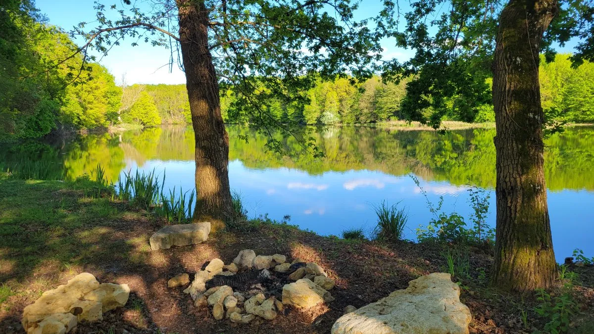 Depuis les gîtes et hébergements du domaine, l'étang est accessible à pied en quelques minutes. Vous pouvez littéralement pêcher en pyjama au lever du soleil, puis revenir prendre votre café sur la terrasse.